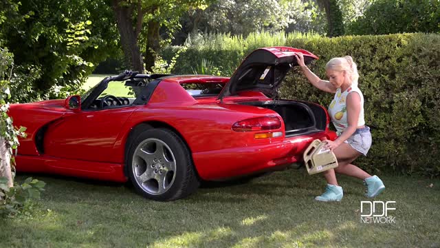 Airbags On The Hood Busty Blonde's Big Tits Exposed!