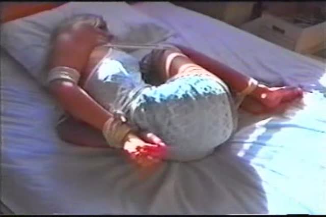 Fresh faced Amy Faye bound in a wooden box and ANALLY pounded without mercy by two big dicks!